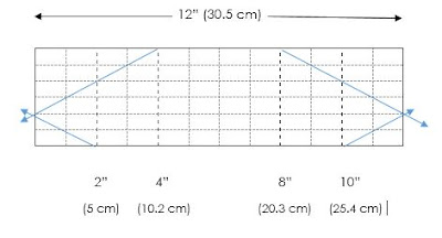 - Lily Impressions DSP – 12″ x 5 ¾” long side on top score at 2″, 4″ 8″ and 10″. On the short side, make a mark at 2″ at the top and bottom.