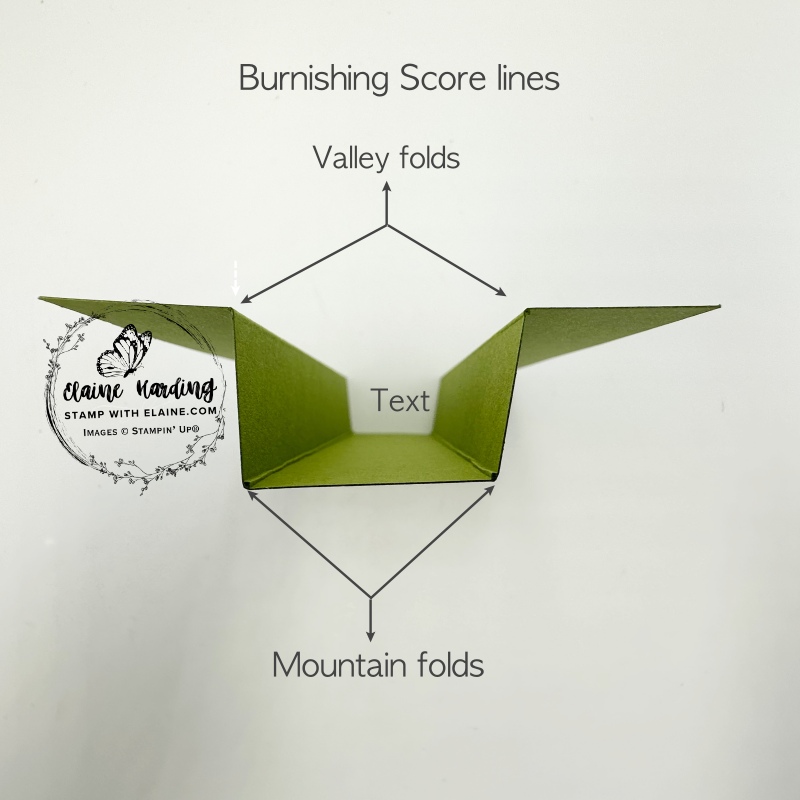 • Picture on the right shows first fold as a Valley fold, the next two are mountain folds and the last one is a valley fold. Burnish well so it resembles this shape viewed from the top.