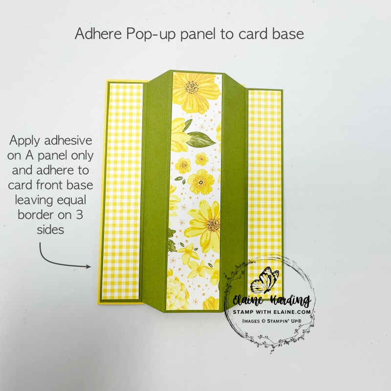 • Apply adhesive to panel A and adhere to left side of card front leaving an even border on all three sides.