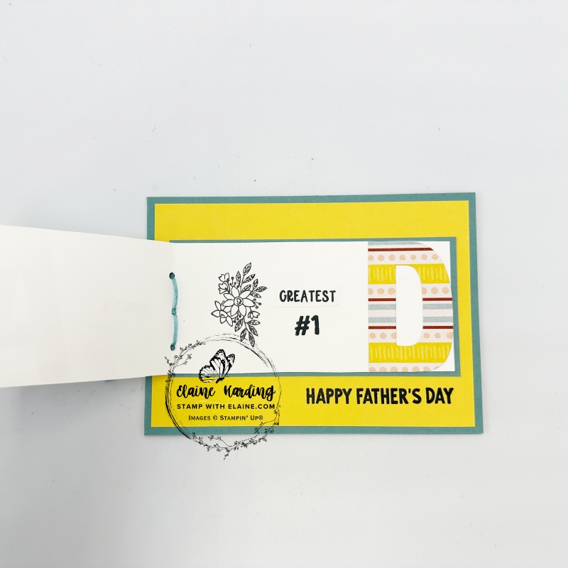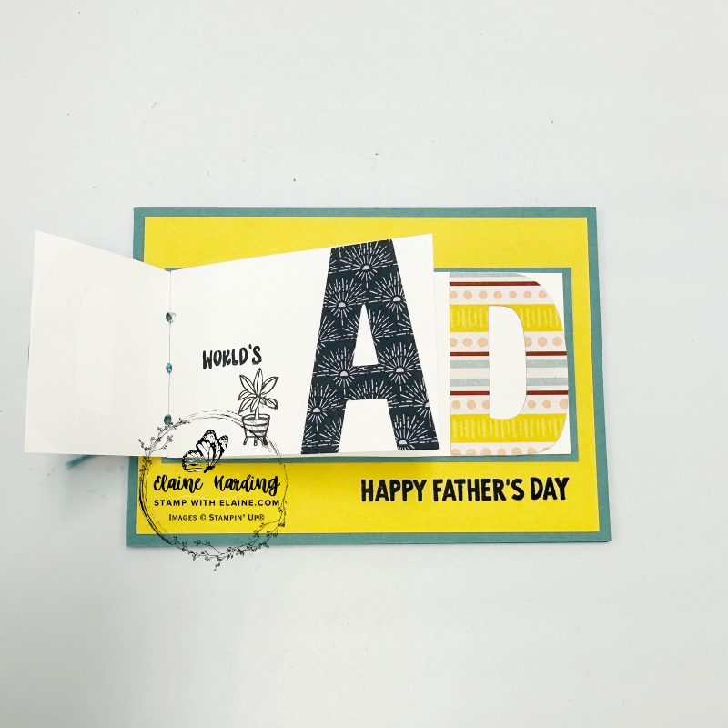 The stamps I used are She’s the Greatest and Trusty Tools, Party Alphabets Dies, Lost Lagoon, Daffodil Delight and Basic White card stock, Boho Vibes 6″x 6″ (15.2 x 15.2 cm) DSP. Inks used are Daffodil Delight, Secret Sea, Smoky Slate classic stamp pads and Lost Lagoon and Smoky Slate Stampin’ Blends, Lost Lagoon soft cording. That’s seems like quite a list!