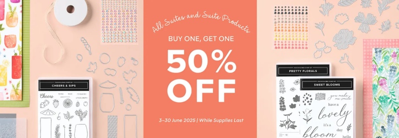 Suite Sale. Starting 3 June, all available suites and suite products from the 2025–2026 Annual Catalogue and Online Exclusives are buy one, get one 50% off! If you’ve had your eye on a new suite from the annual catalogue or you really like the look of a stamp set from an Online Exclusives suite, you don’t have to choose—you can get both!