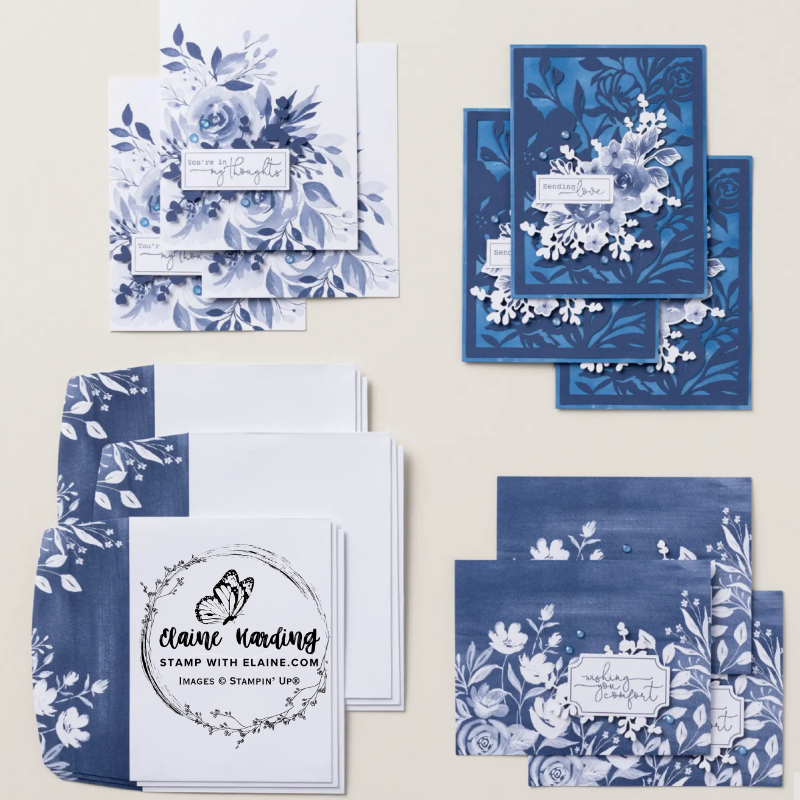I wanted to make a “Get Well” card but couldn’t find anything suitable in Stampin’ Up!’s product line. So I cast my eyes on the Beautiful Blues kit.