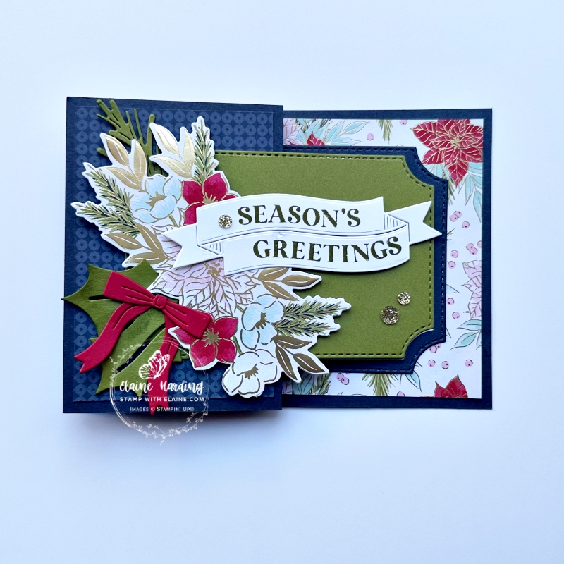 - Inside left front panel 2 : Old Olive embossed with Traditional Wreath 3D embossing folder