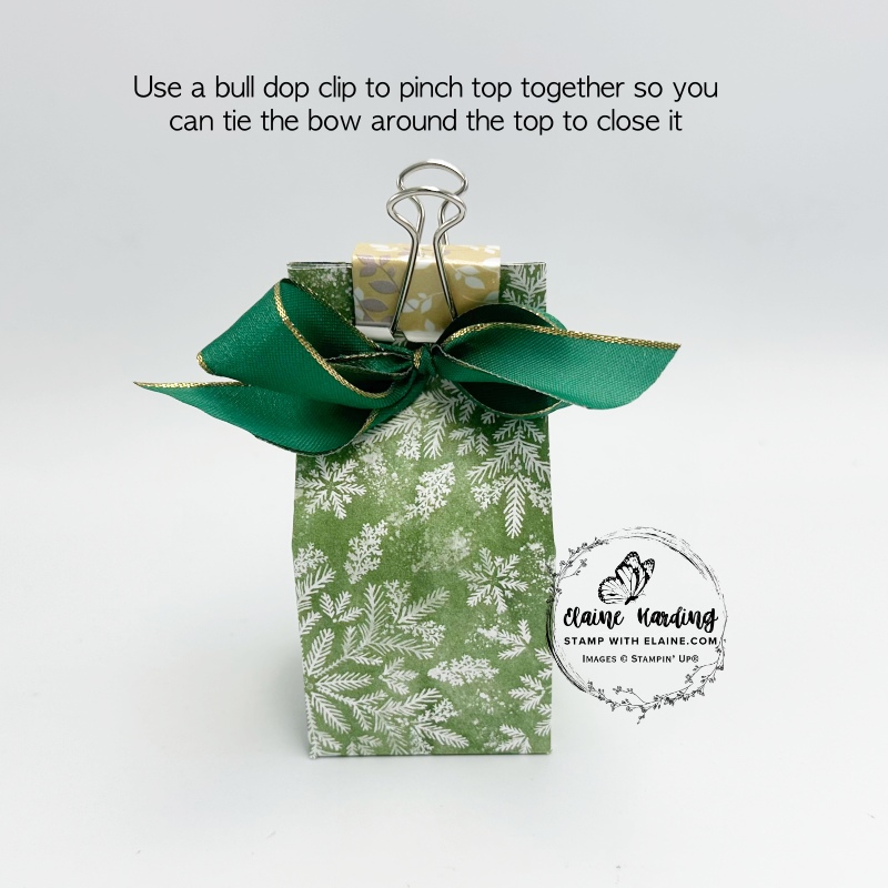 These milk cartons are so easy to assemble. How I construct bespoke packaging is to measure the item and allow extra for the top so that you can tie a bow around it with ease. Having a bull dog clip acts as an extra pair of hands to keep the top closed while you tie the ribbon!