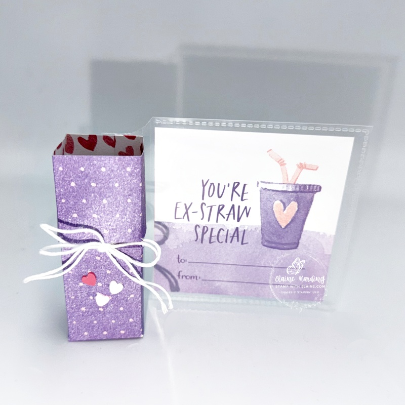 - Insert DSP into flip flap and as a finishing touch, add a trio of loose Valentine assortment to front of box as pictured.