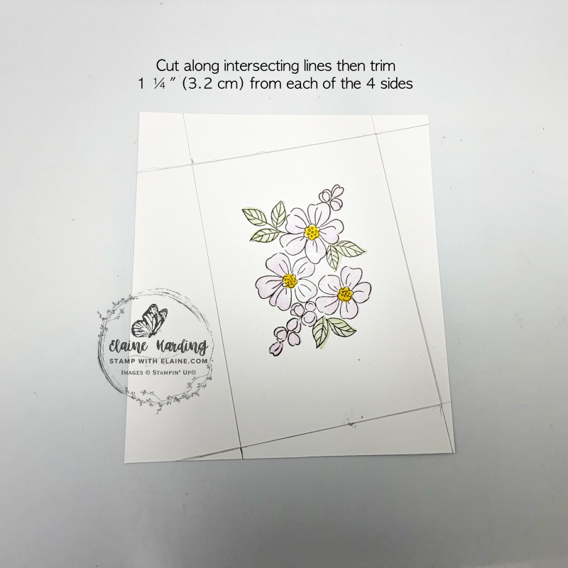 4. Cut Fresh Freesia layer for centre panel at 3 ¾” x 5 ½” (9.5 cm x 14 cm).