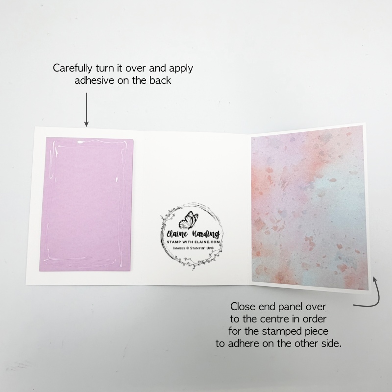3. Next close left panel on top of the end panel and the stamped image will stick on top of the end panel as pictured on the right above.